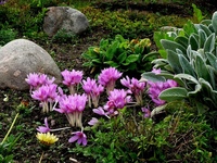 Для нас уже давно стало привычкой провожать зиму с цветением весенних первенцев — пролесков, крокусов, гусиного лука желтого и др., которые составляют группу эфемероидов, многолетников с очень коротким периодом вегетации (не путать с однолетними эфемерами!). Из года в год их непродолжительное, но яркое появление оживляет зимнюю спячку и заставляет восхищаться этим поразительным чудом природы. Безвременник (или колхикум) — растение с весьма интересным периодом вегетации — тоже входит в группу эфемероидов, но, в отличие от собратьев, он больше известен своим необычным цветением в осенний период.Безвременник является лилиецветным растением. Его простые и махровые цветы колокольчатой или воронковидной формы редко бывают желтыми, в основном — белыми, розовыми, сиреневатыми, лиловыми, пурпурными и фиолетовыми. Осеннее цветение безвременника происходит довольно необычно: на пустом безлистном месте, словно из-под земли, появляются одиночные или собранные в пучки цветы.