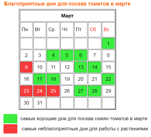 | Благоприятные дни для посадки | Нейтральные дни | Неблагоприятные дни |