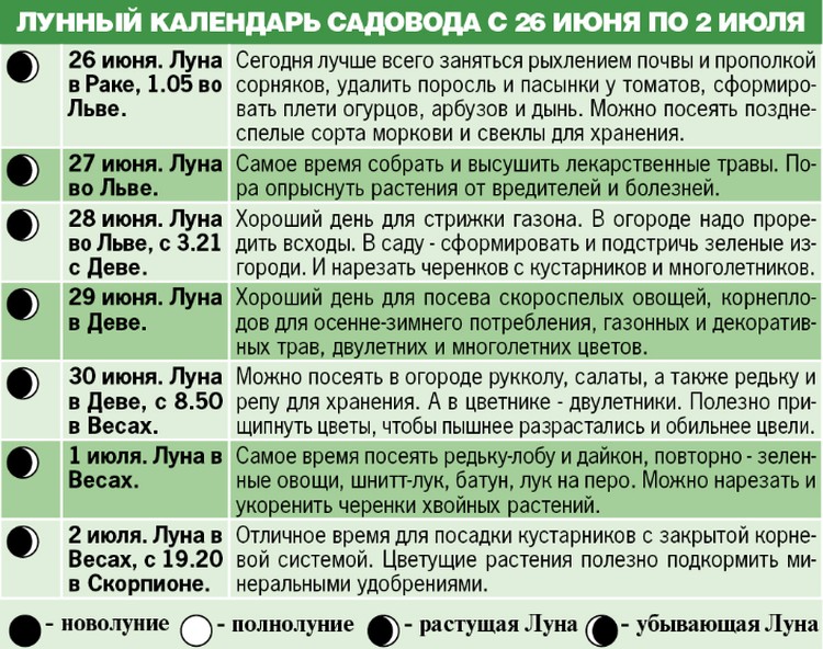 | Культивация, прополка, уничтожение вредителей, опрыскивание, подавление нежелательного роста сорняков | Лучшие дни | 13-15 | 10-12у | 9в-11, 13 | 5в-7, 12 | 3, 4, 11, 26, 30, 31 | 1у, 10, 26в-28 | 9в, 10, 24, 25 | 8, 20в-22 | 6в, 7, 17, 18 | 6, 14, 15 | 4в, 5у, 10-12у, 19 | 4, 7в-9 |