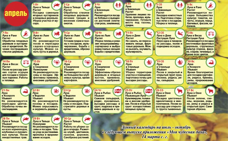 | Подкормка органическими удобрениями | Лучшие дни | 7в-9у, 12 | 4, 5, 8, 9 | 3, 4, 7-9у, 12, 30, 31 | 3в-5у, 8, 9, 28 | 1, 2, 5-7у, 10, 28, 29 | 1в-3, 6-8, 25в, 26у, 29, 30 | 4, 5, 9у, 26-28у, 31 | 1, 2у, 5-7у, 23, 24, 27-29 | 1-3, 24, 25, 29, 30 | 21-23у, 26-28у | 4, 22-24 | 1в-3у, 20, 21, 29, 30 |