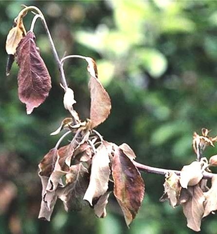 Фитофтороз вызывается бактерией под названием Erwinia amylovora, и поражает некоторых представителей семейства розоцветных, включая груши, яблоки, яблони, боярышник, майхоу и цветущую айву. На восприимчивых сортах бактериальный ожог может быть очень разрушительным, вызывая обширное отмирание и даже смерть при регулярном повторном заражении в течение многих лет.