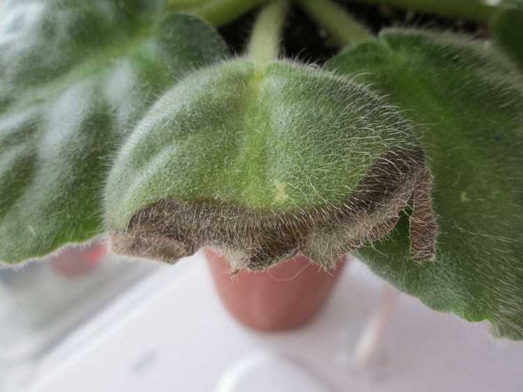 Листья и стебли становятся темными, зеленовато-коричневыми и могут начать выглядеть так, как будто на их поверхности появился пушистый налет. На цветках появятся коричневые пятна или весь цветок станет коричневым и увянет. Botrytis также трудно поддается лечению, но, в отличие от коронной гнили, у вас есть шанс спасти свою фиалку.