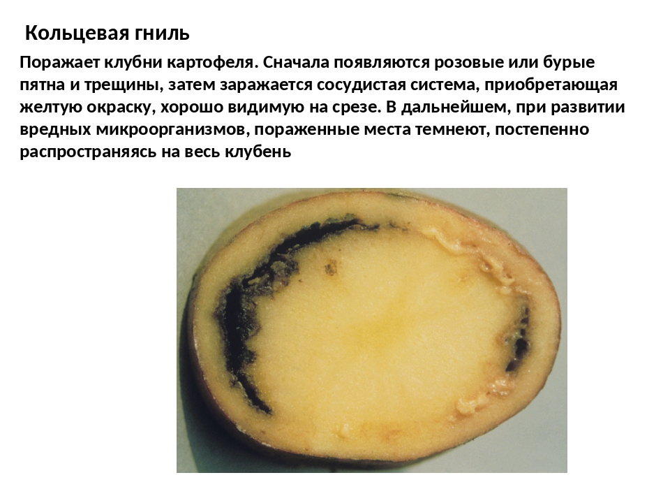 Кольцевую гниль можно обнаружить, только если разрезать клубень картофеля