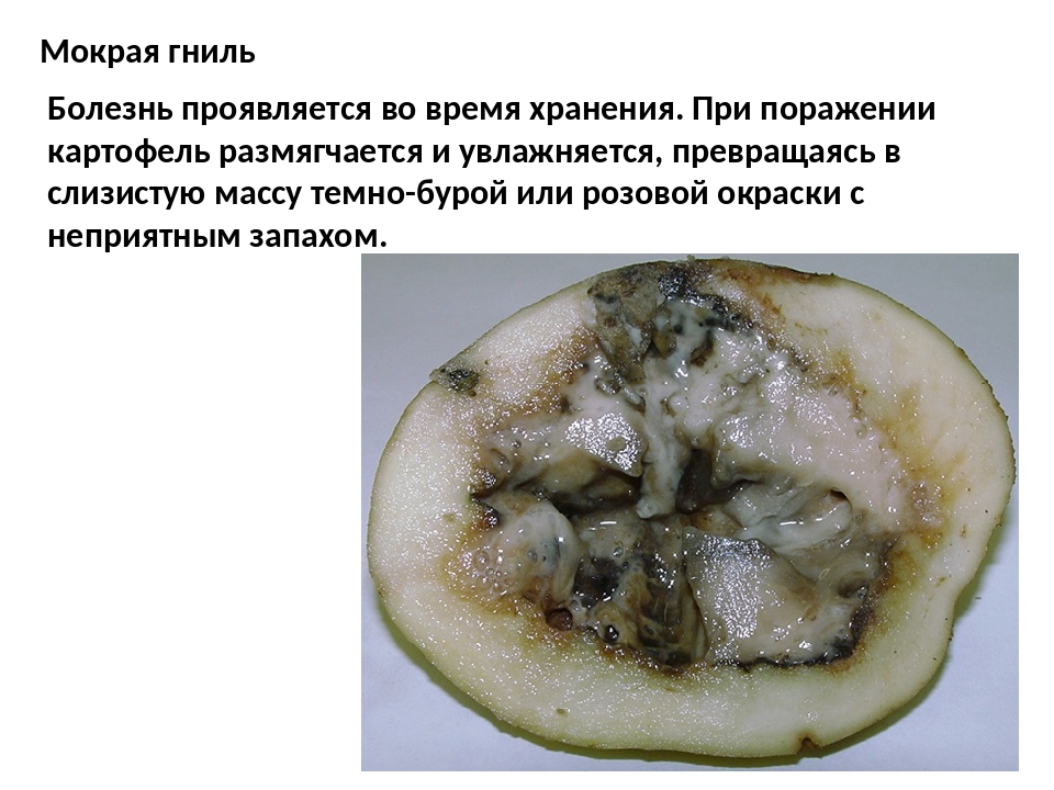 Бактерии мягкой гнили можно найти почти на всех клубнях, но чаще всего поражает картофель.Инфекция возникает в результате повреждения кожи из-за трещин роста или травм, а высокая температура почвы в сочетании с избытком воды обеспечивает идеальные условия для выращивания. Очень часто признаки бактериальной мягкой гнили проявляются только после сбора урожая. Во многом это связано с неправильным обращением с только что собранным картофелем.