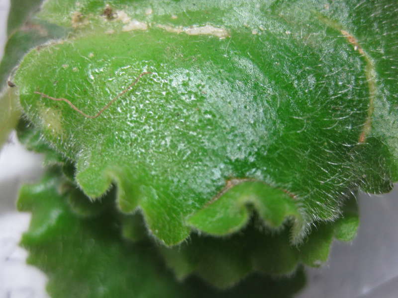 Как и любой живой организм, фиалка может поражаться болезнями. Ниже приведены самые опасные и распространенные болезни фиалок, которые часто встречаются при выращивании. Заражение фиалки клещамиКлещи – микроскопические насекомые. При поражении клещами листья фиалки скручиваются, имеют пыльный вид, растение не цветет. Симптомы заражения клещем: Лист, фиалки зараженной клещами — при поражении цикламеновым клещом на сенполии страдают молодые листья в центре розетки, они деформируются, на них появляются желтые пятнышки, фиалка перестает расти, а центр розетки уплотняется. Точка роста часто засыхает. Стебель становится коротким, низ листьев будто припудрен серым порошком. Цветы перестают развиваться, деформируются. Листья становятся сильно опушенными и ломкими. — при поражении плоским клещом верхняя часть листовой пластинки становится шагренированной, мелко проколотой. При низкой влажности воздуха края листьев повернуты к низу. В первую очередь поражаются нижние листья и в последствии увядают. Лечение: растение обрабатывают акарином, 2-3 раза с интервалом в неделю(при обычной температуре) и через три дня если температура воздуха держится в районе 30 градусов.