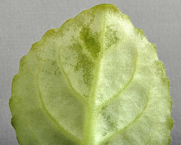 Этой грибковой болезни подвержены многие комнатные растения. Проявляется она возникновением на листочках белого налета. Однако удалить его с цветка довольно сложно.