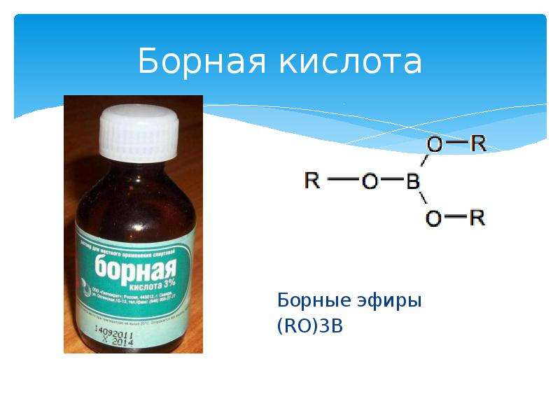 Это неорганические соединения, в которых наибольшим оксоанионом металла является борат, с которым либо атомы, либо атомы неметалла не связаны. Борная кислота (h4BO3) — это лекарственное средство. Борная кислота (h4BO3) — чрезвычайно слабое основное (по существу нейтральное) соединение (на основе его pKa). Борная кислота (h4BO3) присутствует во всех живых организмах, от бактерий до человека. Вне человеческого тела борная кислота (h4bo3) в среднем содержится в самых высоких концентрациях в гранатах. борная кислота (h4bo3) также была обнаружена, но не определена в нескольких различных продуктах, таких как инжир, французский банан и красная смородина.Это может сделать борную кислоту (h4bo3) потенциальным биомаркером для употребления этих продуктов. Он имеет ограниченное использование в качестве антибактериального средства в икре. Борная кислота (h4BO3) — потенциально токсичное соединение. Нет признаков канцерогенности для человека (не внесен в список IARC). Прополоскать рот водой (никогда не давать ничего через рот человеку без сознания).