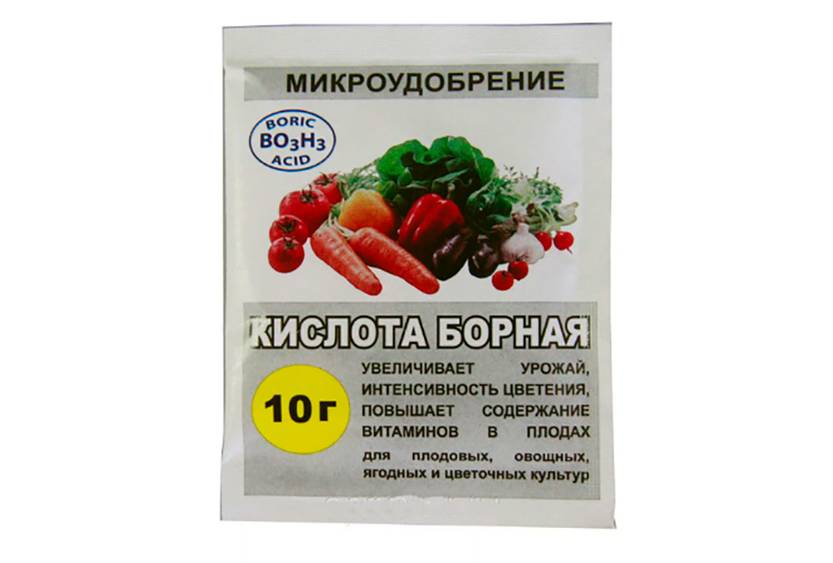 На один пакет: борная кислота – 2 г, 10 г или 20 г.