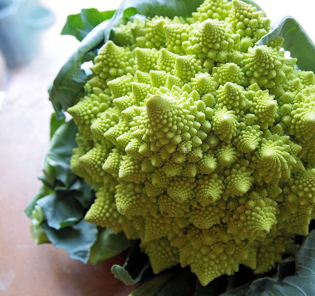 Позднеспелый сорт Романеско привлекает к себе своим необычным видом: его соцветия напоминают нежно-зеленые ёлочки