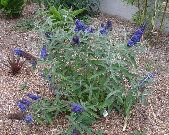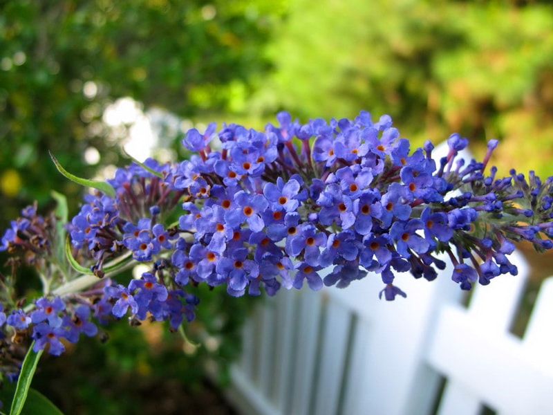 Адонис Блю™ Баттерфляй куст с эффектными метелками ароматных ярко-синих цветов на концах ветвей с середины лета до середины осени.