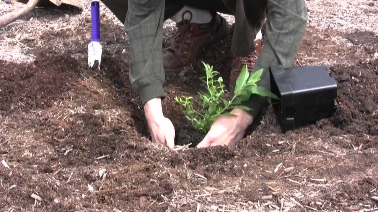 Посадив растение в посадочную яму, одной рукой держите растение прямо, а другой рукой начните засыпать почвенную смесь вокруг корня мяч, утрамбовывая его, чтобы удалить воздушные карманы. Когда вы заполните яму наполовину, вы можете замочить почву. Затем продолжайте засыпку до верхнего края корневого кома.Чтобы не задушить растение, не кладите почву поверх корневого кома.