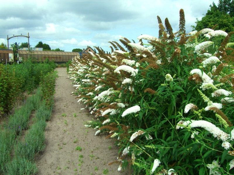 Буддлея замечательно сочетается с разными цветущими кустарниками: спиреей, лапчаткой, клумбовыми и почвопокровными розами. Можно использовать в качестве солитера. В цветниках высаживают обычно на заднем плане, для создания фона.