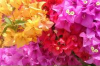 Бугенвиллия цветет фуксией, красными, белыми, желтыми и оранжевыми цветами.