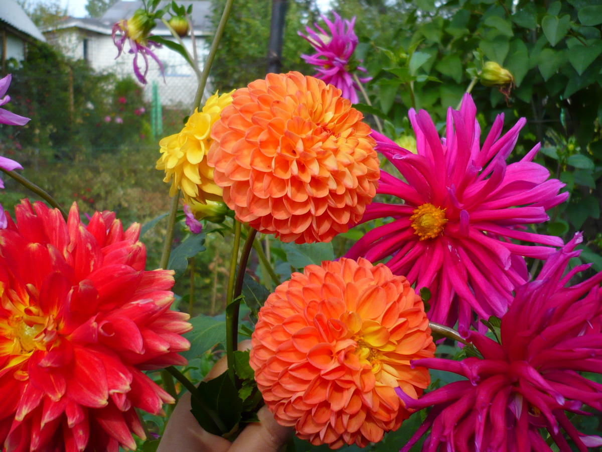 Осенний букет георгинов — свежий из сада букет георгинов, который выглядит только что собранным в саду.