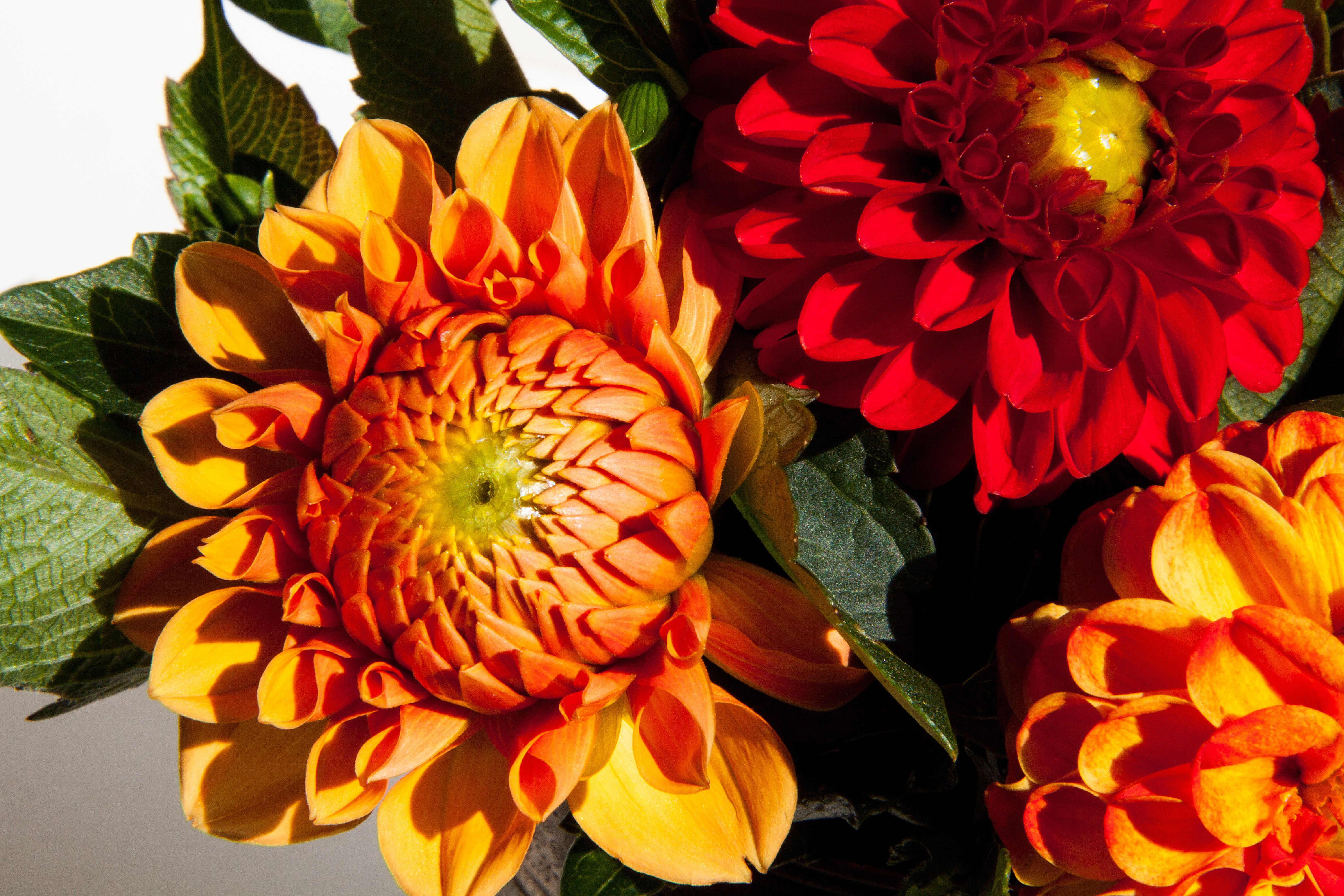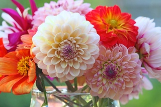 С лилиями, каллами или розами георгины лучше не компоновать. Кроме того, при создании букета нужно правильно и гармонично подобрать цветовые гаммы цветов. Если георгины имеют светлый окрас, дополнительные цветы тоже лучше брать светлых оттенков, чтобы не затмить основные букеты ярким цветом. А вот разноцветные георгины можно дополнить и яркими, и светлыми бутонами, чтобы подчеркнуть их красоту. Немного фантазии – и букет получится ярким, пышным, привлекательным.