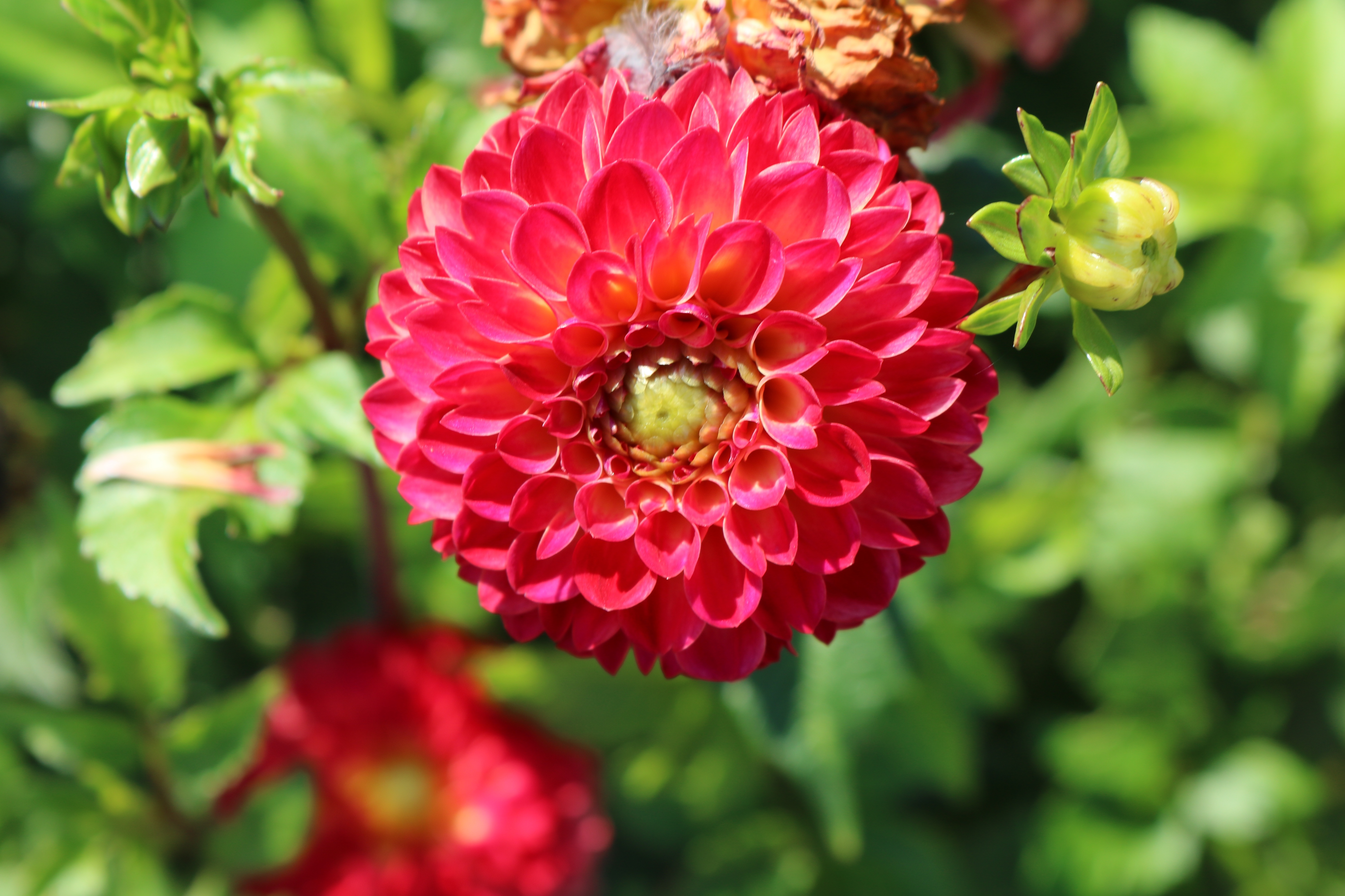 - Помпонные георгины выглядят как шаровидные, только меньшего размера.