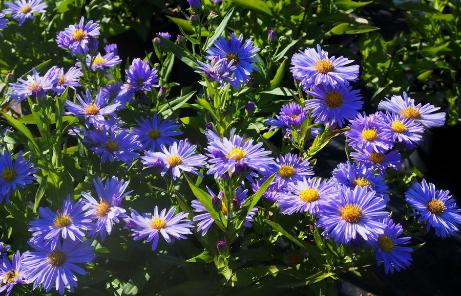 - Осенние (позднецветущие) – астры вересковая (хороши сорта Finale, Schneegitter, Lady in Black), кустарниковая (популярны сорта Rudelsburg, Heinz Richard, Alice Haslam, Blau Lagune, Kristina, Schneekissen), новоанглийская (наиболее распространены сорта Barrs Blue