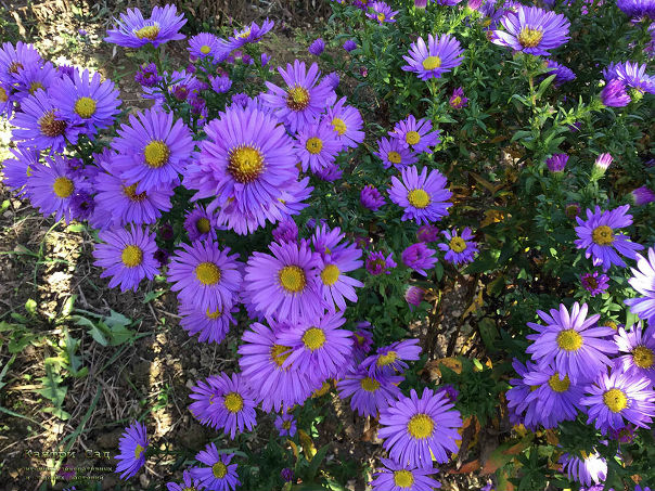Астра многолетняя поселилась в наших краях сравнительно недавно и привычнее называть её октябринка, ноябринка, покровка. Скромные кустики всё лето стоят неприметными, и только осенью взрываются яркими фонтанами сиреневых цветов. В Англии эти растения известны под метким названием Ромашка на Михайлов день, так как пик цветения приходится как раз на этот праздник.