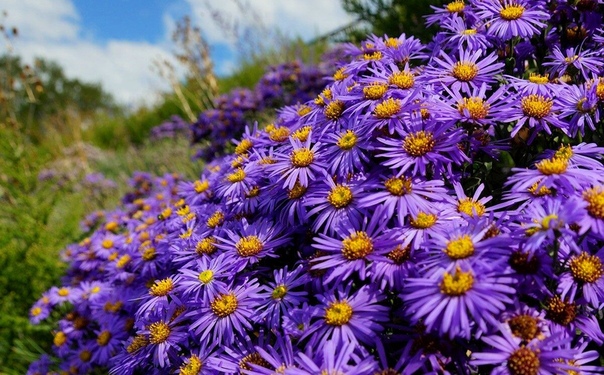 Цветки астры могут достигать 3–4 футов или могут быть компактными и бугорчатыми, как у альпийского типа. Существует шестьсот и более разновидностей астр. Сочетайте астры в естественном саду с хвойными цветами и золотарником, чтобы получить эффектный вид.