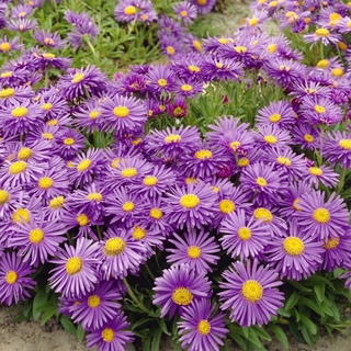 Цветение очень обильное, продолжается до 30 дней. Астры прекрасно смотрятся в групповых посадках, в качестве бордюров. К наиболее популярным сортам можно отнести сорт Альба (Alba), Глори (Glory) , Голиаф (Goliaph), Супербус (Superbus), Рубер (Ruber), Розеа (Rosea), Дункле Шёне (Dunkle Schеne), Вундер. - Итальянская (A. amellus L.) или ромашковая относится к многолетним растения. Астра итальянская начинает своё цветение в июле — сентябре. Цветение продолжительное, до 65 дней. Цветы астры итальянские многолетней бывают сиреневыми, розовыми, тёмно-синими. В диаметре, соцветия достигают 5 см.