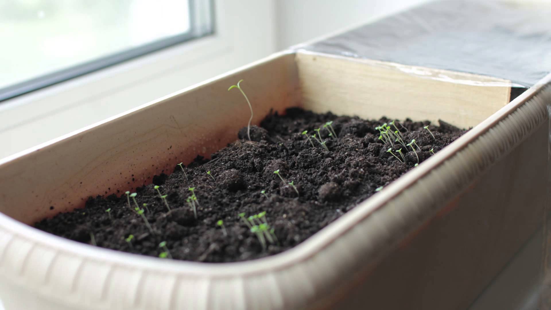До появления всходов емкость с посевами накрывают сверху пленкой или стеклом и размещают в теплом затемненном месте.