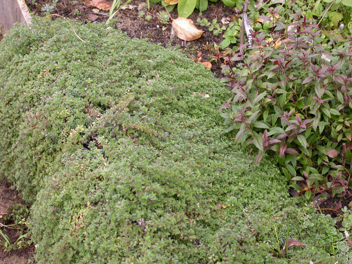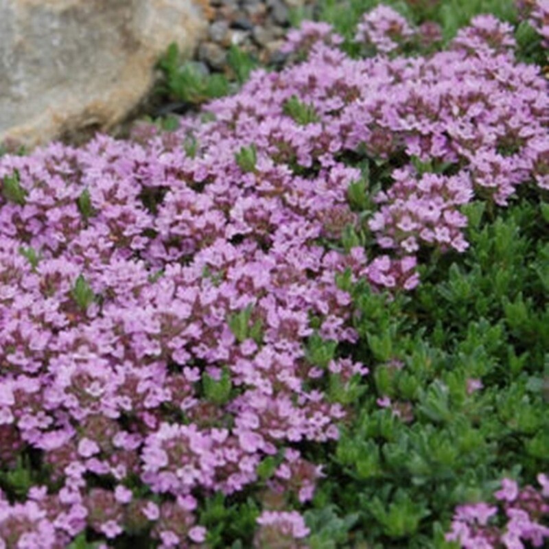 тимьян ползучий, доступен во многих цветах и используется как