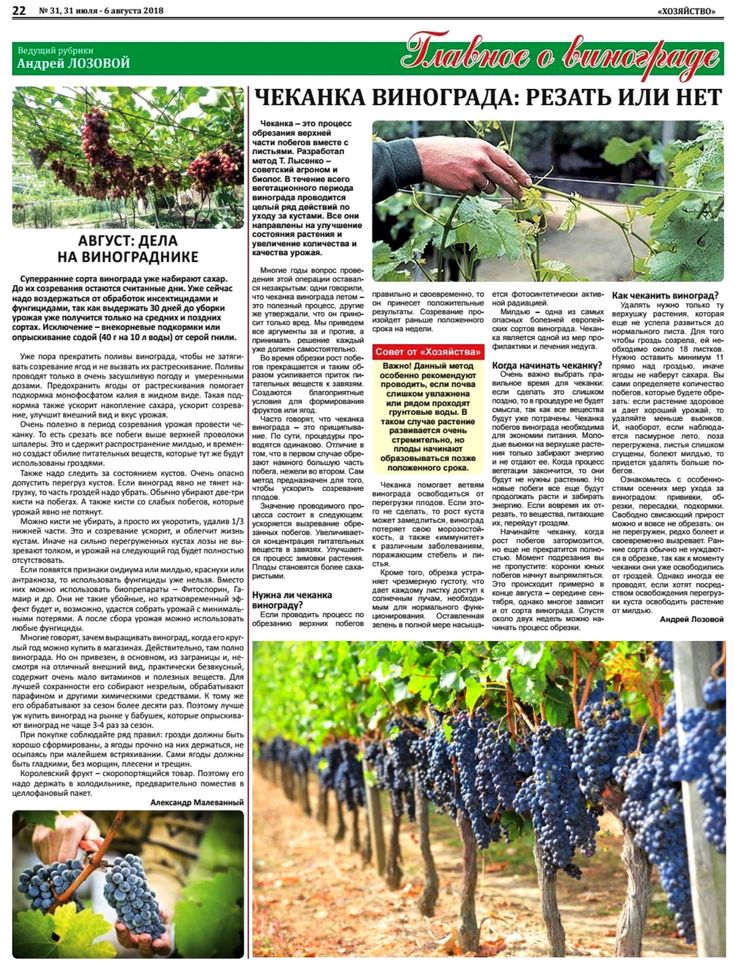 Так называемую чеканку лоз лучше проводить во второй-третьей декадах месяца. Такая обрезка представляет собой удаление верхушек всех молодых побегов с 6-8 верхними листьями. В зависимости от высоты куста, нужно отрезать от 20 до 40 см. Если вы все сделаете правильно, то к зиме ваша лоза окрепнет и накопит необходимые ей питательные вещества.
