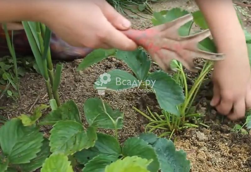 Обработка почвы на грядке и подкормка клубники