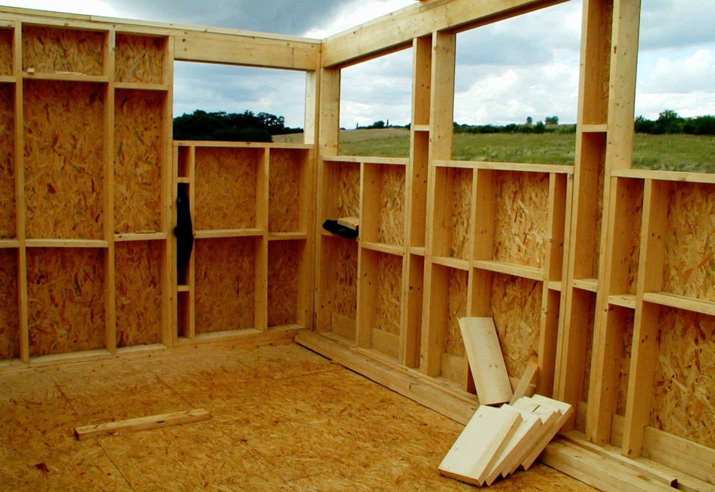 Как потолок, так и стены можно обшивать ориентированными плитами. Этот материал изготавливают из древесных стружек, скрепляемых восковыми соединениями и искусственными смолами.
