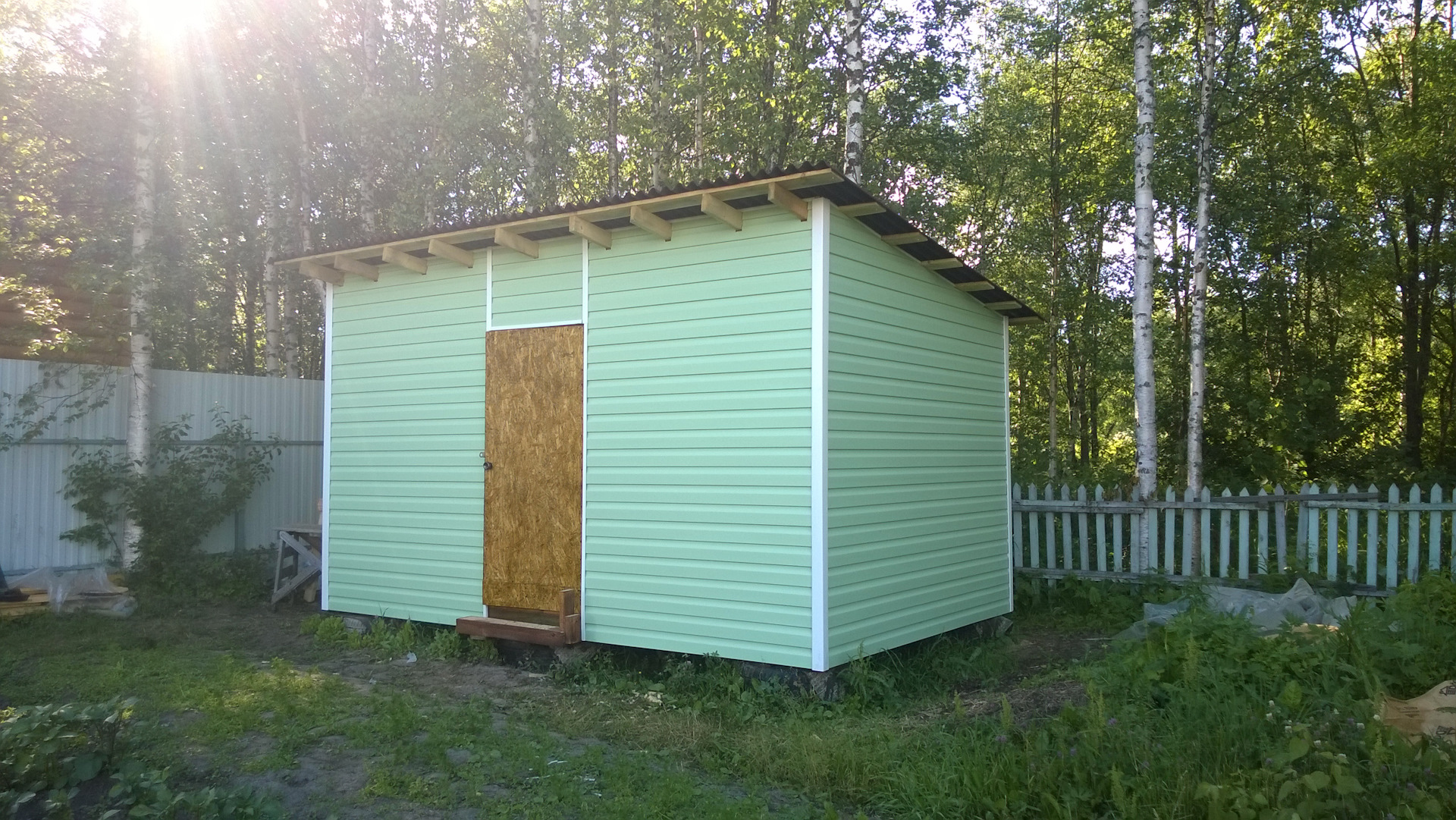 Обшивка сарая виниловым сайдингомОтделка сарая снаружи может выполняться разными типами материалов. Главное, чтобы они были прочными и хорошо переносили действие неблагоприятных погодных факторов.
