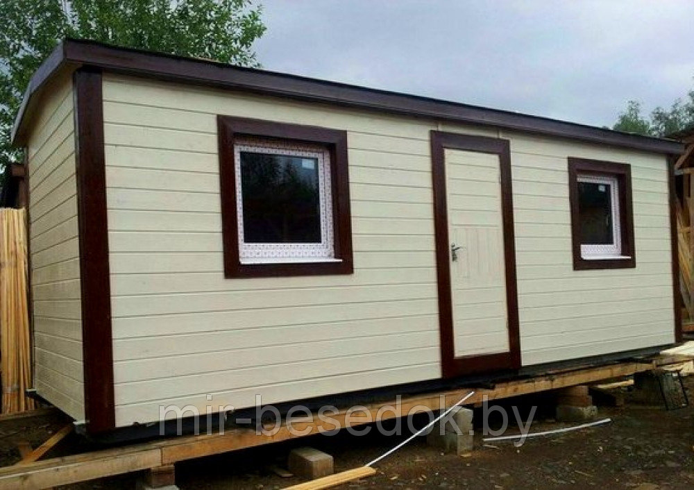 Завершает всю постройку обшивка облицовочным материалом снаружи. Им прекрасно может служить профнастил. Нельзя забывать, что снаружи, до монтажа профнастила, весь каркас необходимо затянуть гидробарьером. Внутри же предстоит утеплить стены минеральной ватой и зашить их древесно-стружечной плитой. То же касается и потолка. Устанавливается столярка, монтируется пол по лагам из доски и хозблок готов.