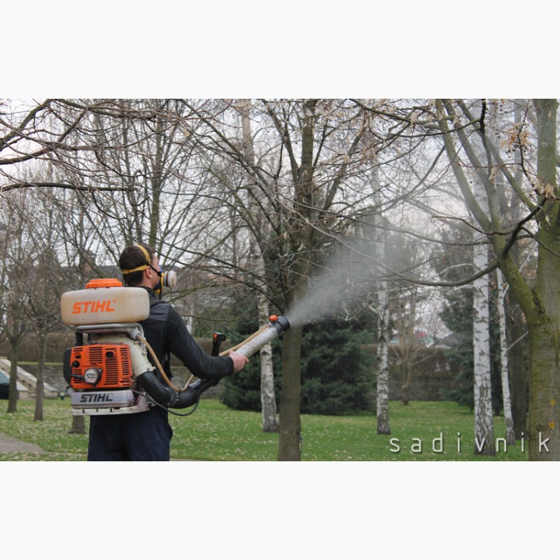 Профилактическая обработка деревьев против гнили и вредителей, которые любят зимовать в коре. Проводить опрыскивание следует в безветренную погоду, не рекомендуется проводить процедуру перед дождем.