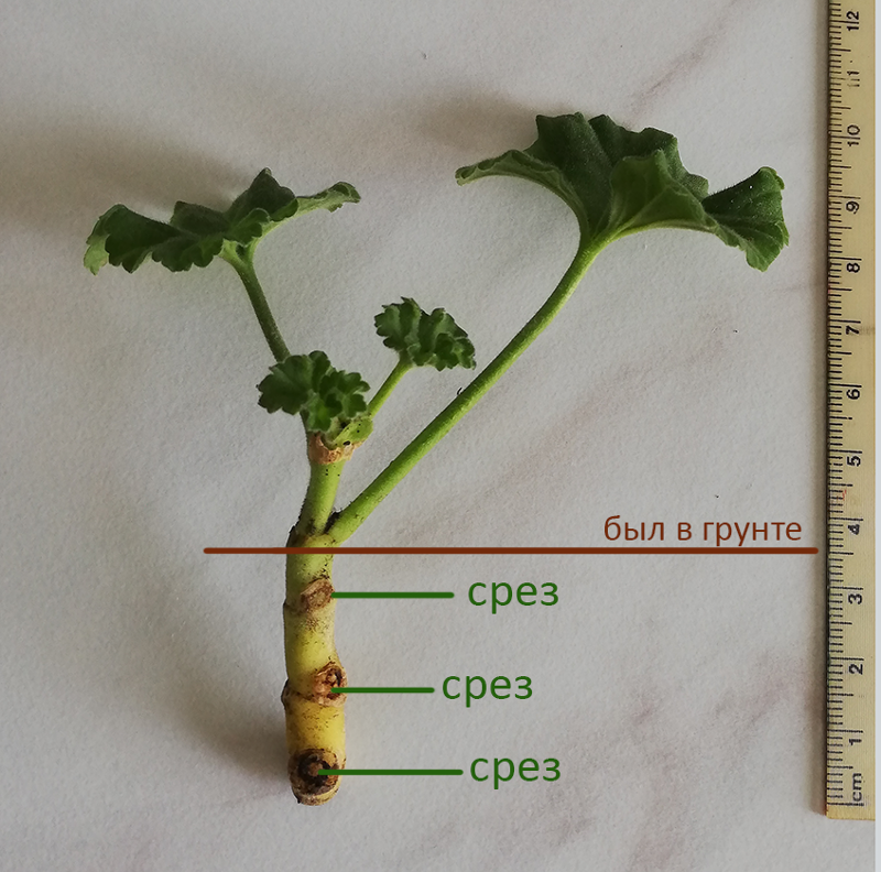 Обрезают основной ствол, оставляя три-четыре почки. Впоследствии из них разовьются молодые побеги, которые тоже следует прищипнуть, чтобы придать растению компактный вид. Герань легко переносит все операции по формированию куста. Оставленные старые ветви могут вовсе не зацвести, или зацвести скудно. Полученные черенки можно использовать как посадочный материал.