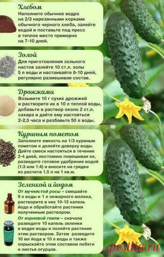 Когда растущие огурцы находятся в теплице, вы должны подумать о следующих продуктах: