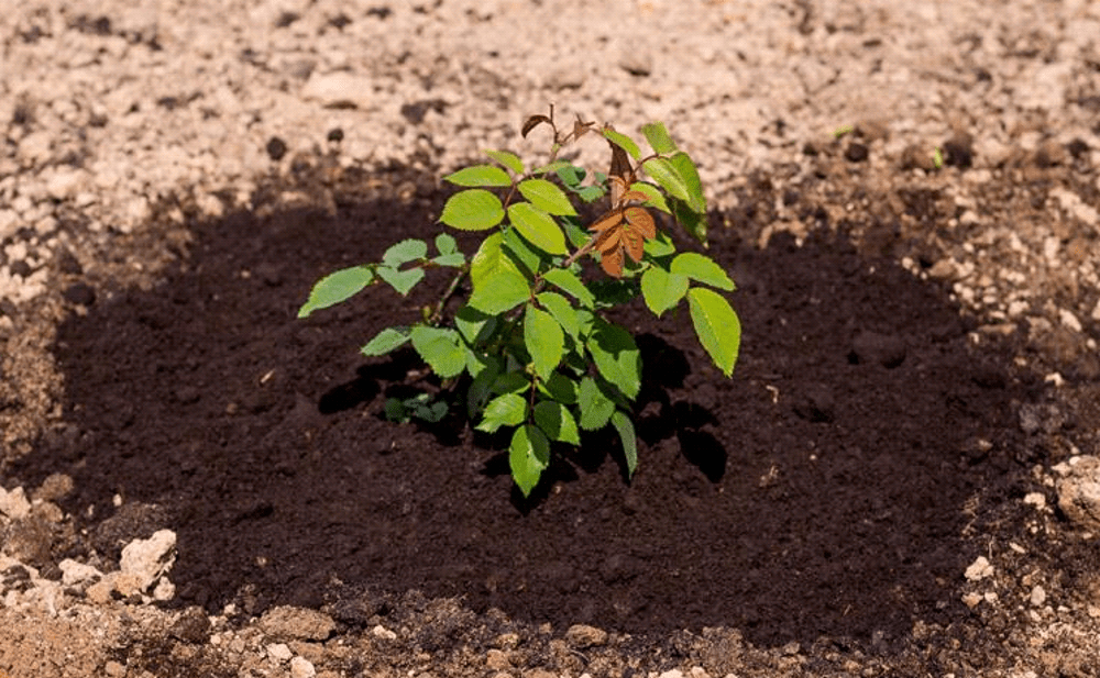 - Установить саженец, расправить корни горизонтально и прикопать.