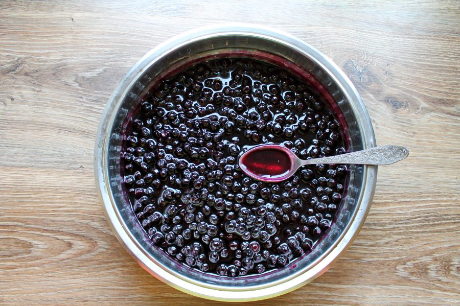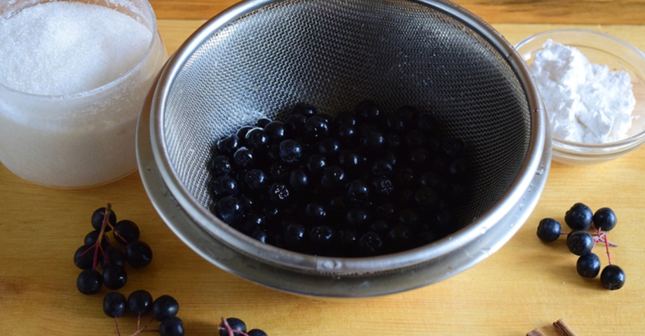 Если у вас мало времени, но вы хотите сделать быстрое сопровождение к бранчу или начинка, чтобы сделать торт более нарядным, попробуйте этот рецепт.Вы можете заменить чернику замороженными ягодами черноплодной рябины. Этот не требуется дополнительного пектина или времени для застывания. https://www.allrecipes.com/recipe/239514/easy-small-batch-blueberry-jam/