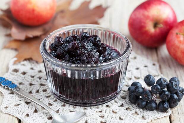 Сезон сбора черноплодной рябины наступает в сентябре-октябре. Самое время собрать ее и заготовить: из аронии готовят ликеры, варенье, джем, компот, желе, мармелад, ягоды можно протирать с сахаром, сушить или замораживать. Можно заготовить и сок черноплодной рябины. Все это разнообразит ваше меню, но не только. Заготовки из черноплодки — отличный вклад в здоровье: от каких только проблем она не помогает избавиться! Секрет — в ее уникальном составе.