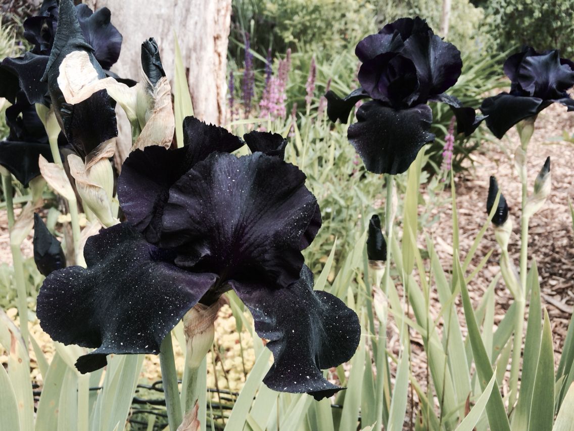 Черные ирисы. В реальности черный цвет ещё траурнее, чем на фото.