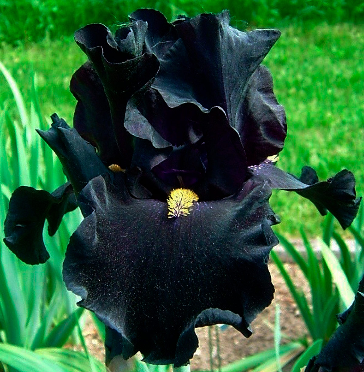 Чернильный — самый редкий оттенок в растительном мире. И бородатому ирису Black Dragon (Блэк Дрэгон) очень повезло обладать именно такой расцветкой. Его распустившиеся соцветия находятся на высоте около метра и бесстрашно подставляют нежные лепестки жгучим солнечным лучам. Верхние лепестки демонстрируют обволакивающую темно-фиолетовую расцветку. В вечернее время суток цветы становятся практически черными, тогда как «бородка» и область вокруг таковой всегда остаются белесыми. Структура соцветий подозрительно напоминает бархат, причем как на внешний вид, так и на ощупь. Размер каждого цветка — не меньше 15 см в окружности! Впечатляет, не правда ли?