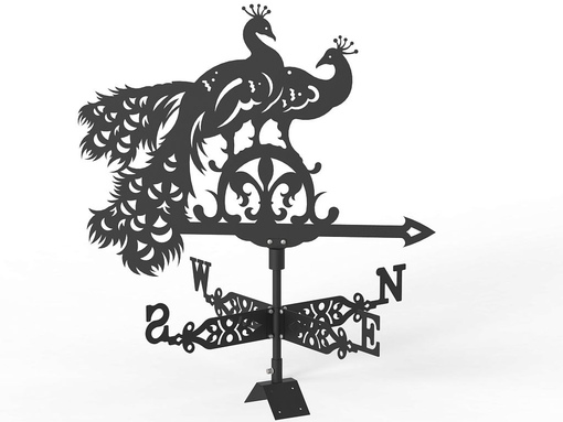 Для правильной работы флюгера вес с каждой стороны лопасти должен быть одинаковой массы! Однако площадь орнаментов на противоположных сторонах лопасти должна быть неравной, заставляет точку наименьшего сопротивления смотреть навстречу ветру.