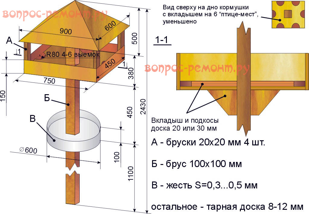 Кормушка для птиц своими руками. Чертёж кормушки.