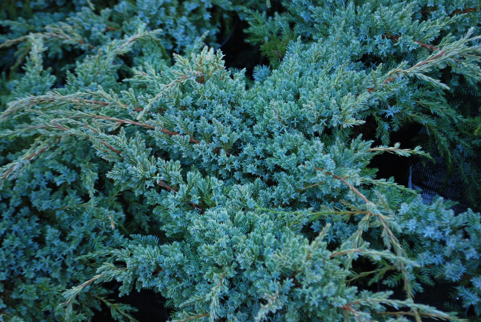 Крупным по своему размеру чешуйчатый можжевельник назвать нельзя. В зависимости от своего сорта, растение может иметь различную крону, форму и габариты. Побеги данного растения, как правило, сильно провисают, из-за чего нередко создается впечатление, что под кустом расстелен плотный игольчатый ковер. Ветви можжевельника имеют очень частое ветвление, а также очень плотную и колючую хвою, длина которой способна достигать 8 миллиметров. Изгибается хвоя, как правило, в сторону побега и имеет присущий каждому сорту можжевельника аромат.