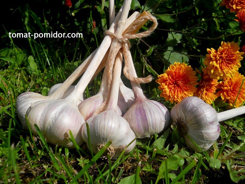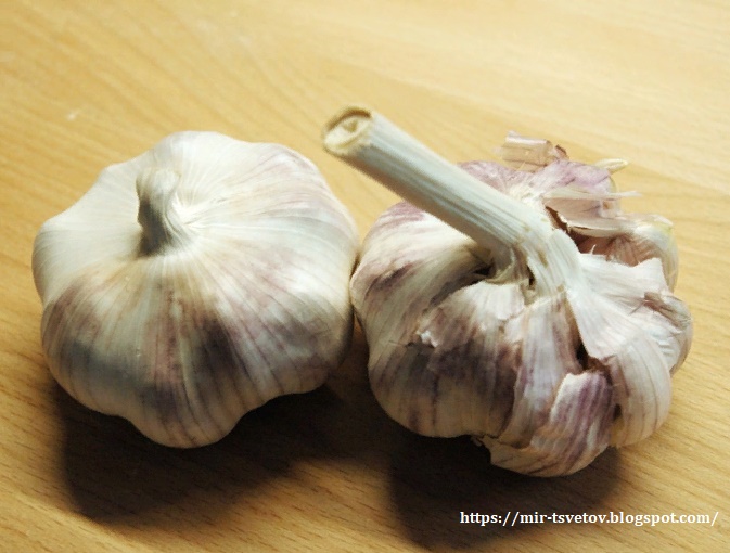 Чеснок остро-сладкий на вкус и имеет насыщенный аромат. Хорошо переносит мороз и хранение. - Иссык-кульский гигант. Также относится к среднеспелому сорту, который дает стрелу. Крупная серая или светло-фиолетовая луковица достигает массы до 200 г, состоит из 6-10 зубков. Растение холодостойкое и хорошо хранится.