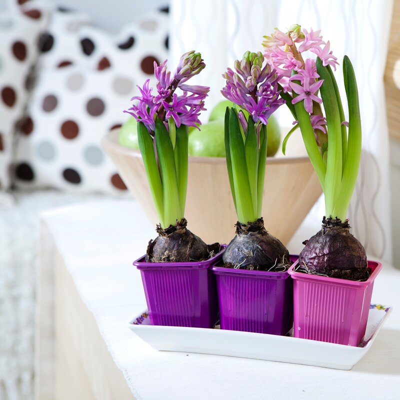 В зимние месяцы в продажу поступает выгонка гиацинтов — небольшие луковицы с листьями и соцветием. Отцветшие гиацинты не стоит выбрасывать. Их легко сохранить, а затем высадить на участке. На следующий год эти гиацинты зацветут.