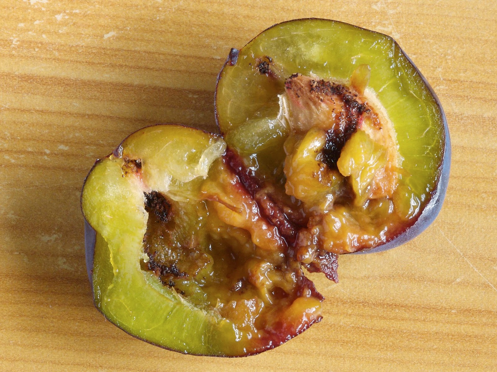 Всегда разрезайте сливу пополам и удаляйте косточку перед едой. Таким образом, вы можете убедиться, что внутри нет ошибок. Когда дело доходит до слив, съесть их целиком и выплюнуть косточку — не лучшая идея.
