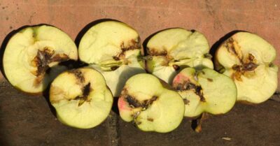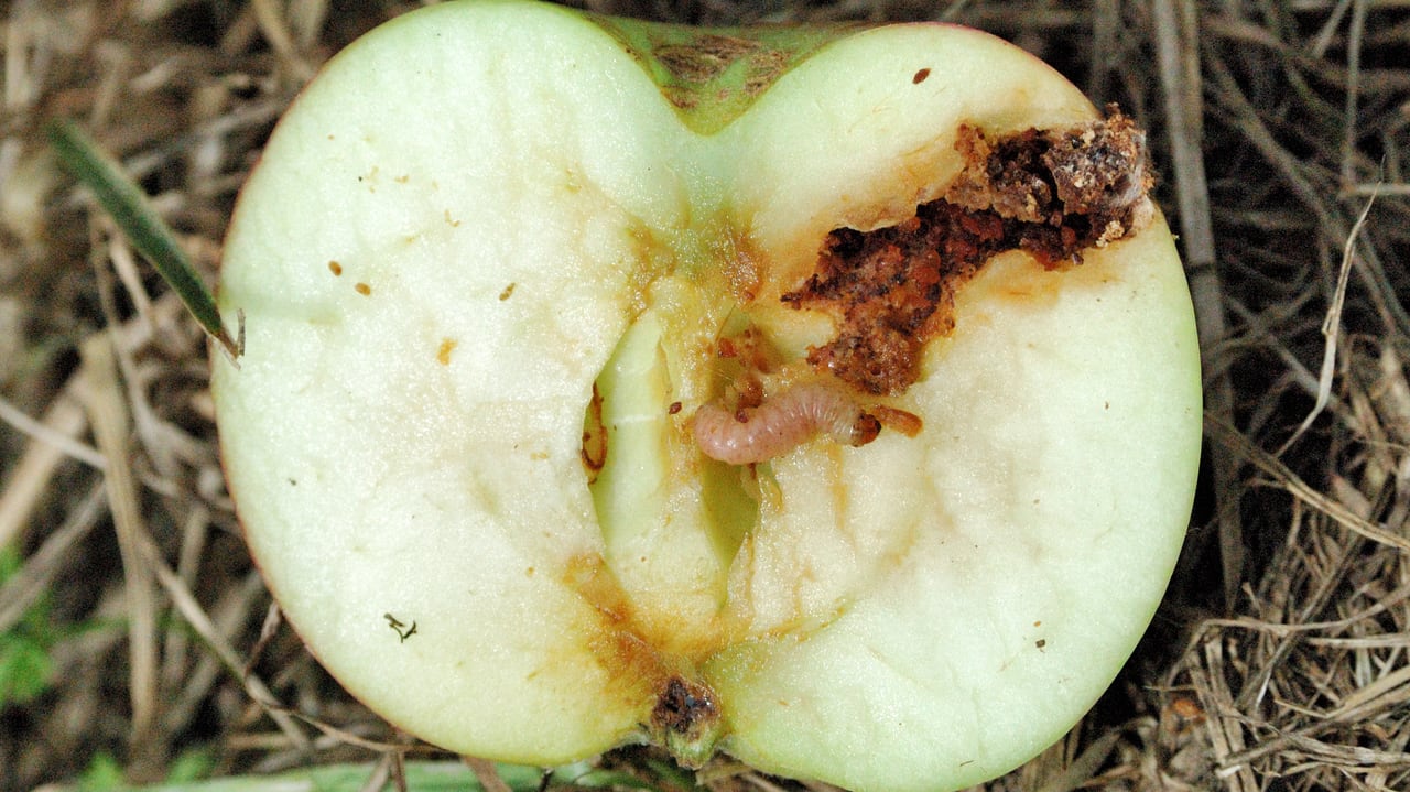Вы увидите пятна в форме полумесяца на развивающихся плодах, если они присутствуют, но эти опрыскивания после цветения и перед сбором урожая в большинстве случаев резко уменьшат ущерб от этого вредителя.
