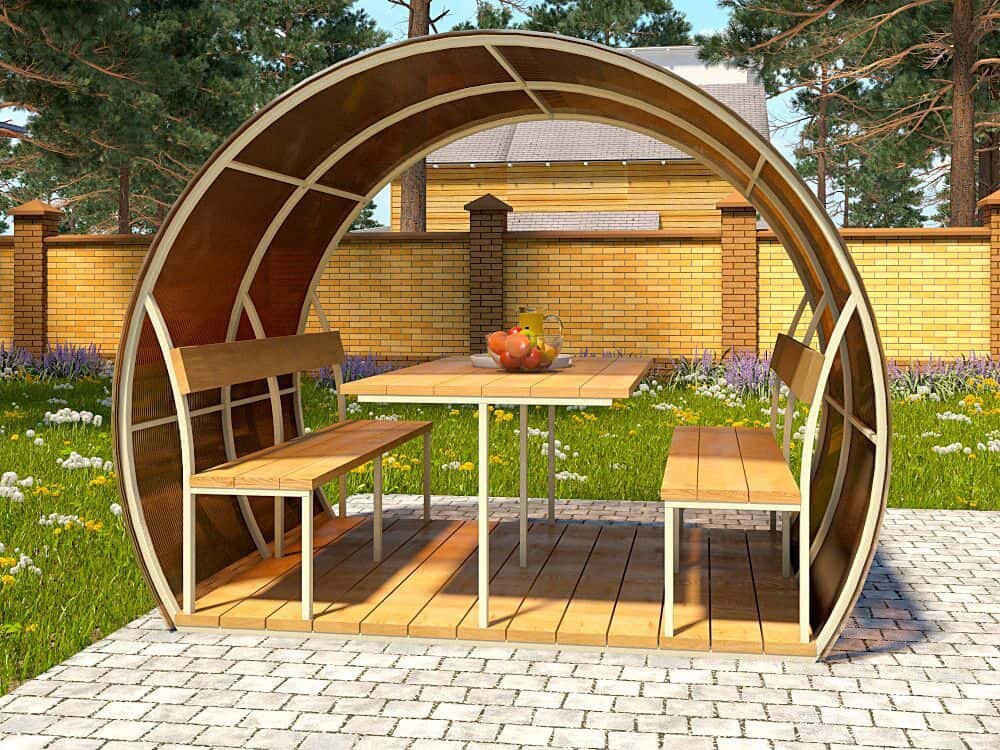 Нетрадиционные виды беседок – это легкие садовые строения с крышей для использования в качестве кухни, столовой, тренажерного зала или рабочего кабинета.