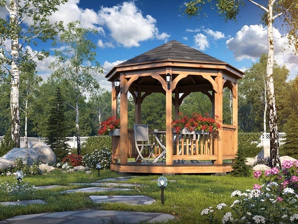 Деревянные беседки — самый распространенный вид, особенно в тех областях, где древесина является экономичным материалом.