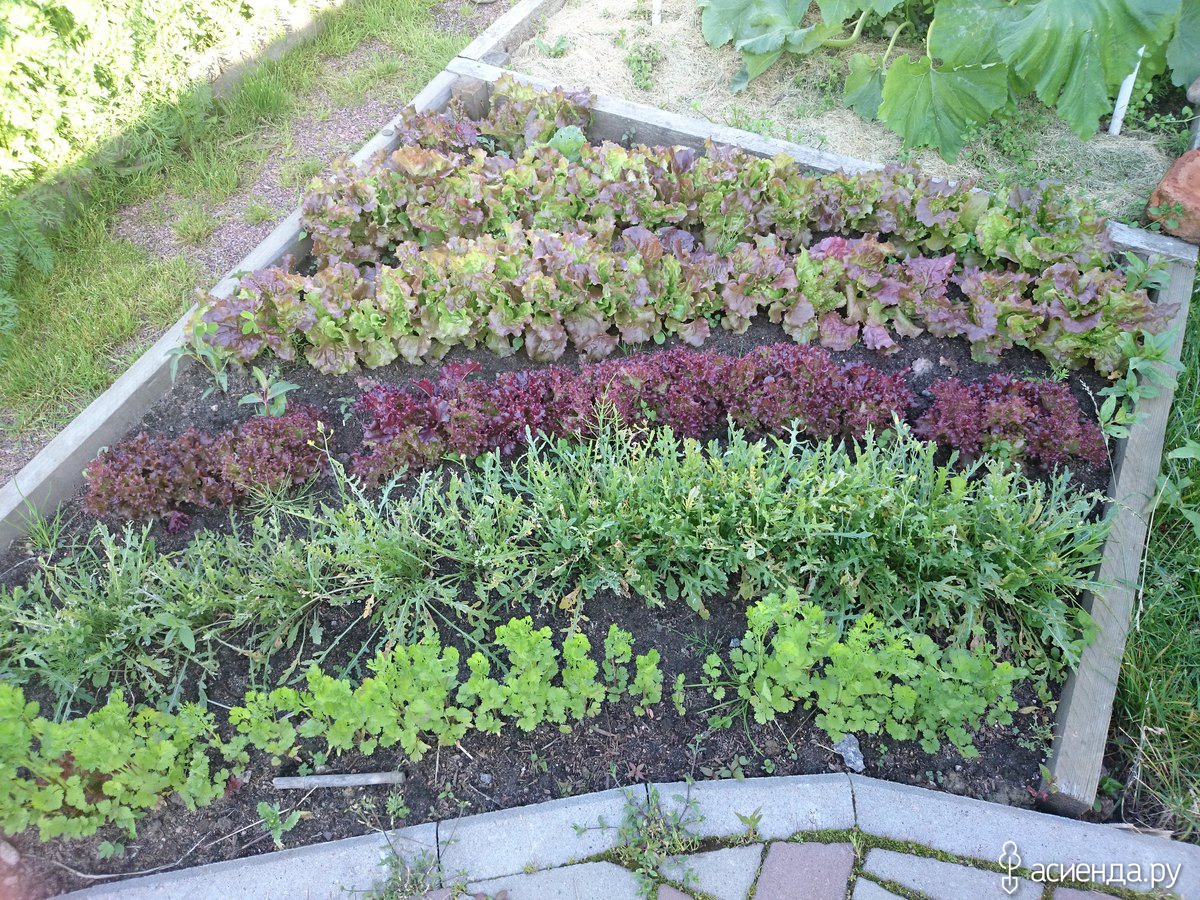 Грядки с салатом рыхлите и почаще поливайте.