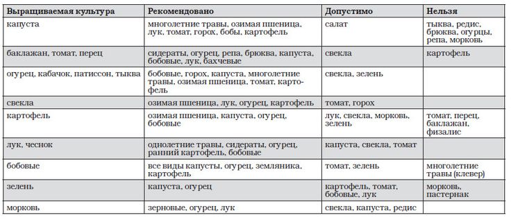 В итоге мы составили таблицу, которая поможет сориентироваться в выборе культуры-последователя для картошки.